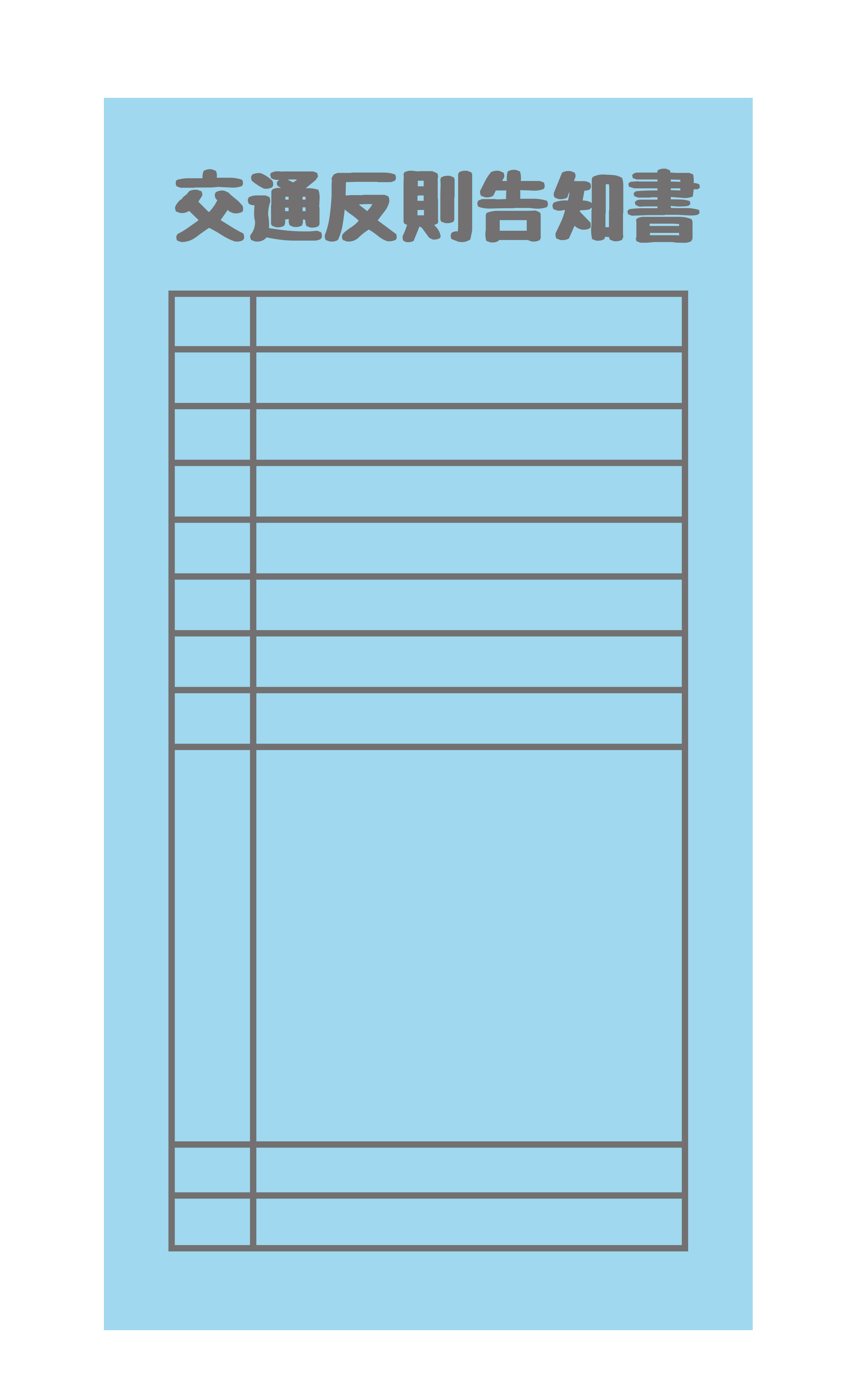 交通違反告知書青切符1 JPG PNG AI 青切符 違反 交通 ルール 自転車 反則 罰金 ながらスマホ 取り締まり 警察 ベクター イメージ フリー素材 folderモノ shoppingmode生活・車・自転車 関連素材 お墓1 ビジネスマン後ろ姿-遠1 登録不要、完全無料、商用可 フリーイラスト.jp 分布図1 シニア免許返納1 うずら筆文字1 父と実家1 警察署1 杉板テクスチャ1 通帳1