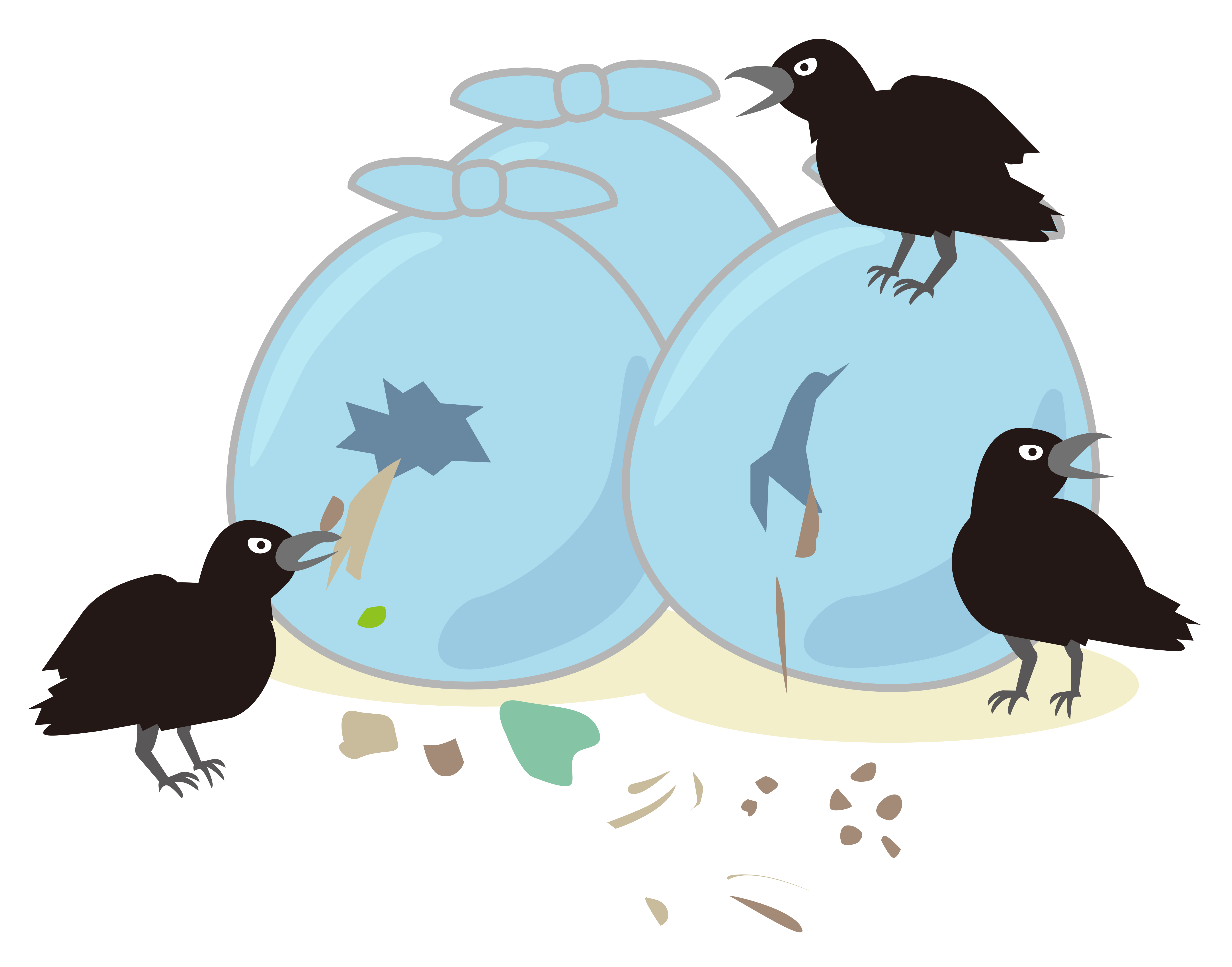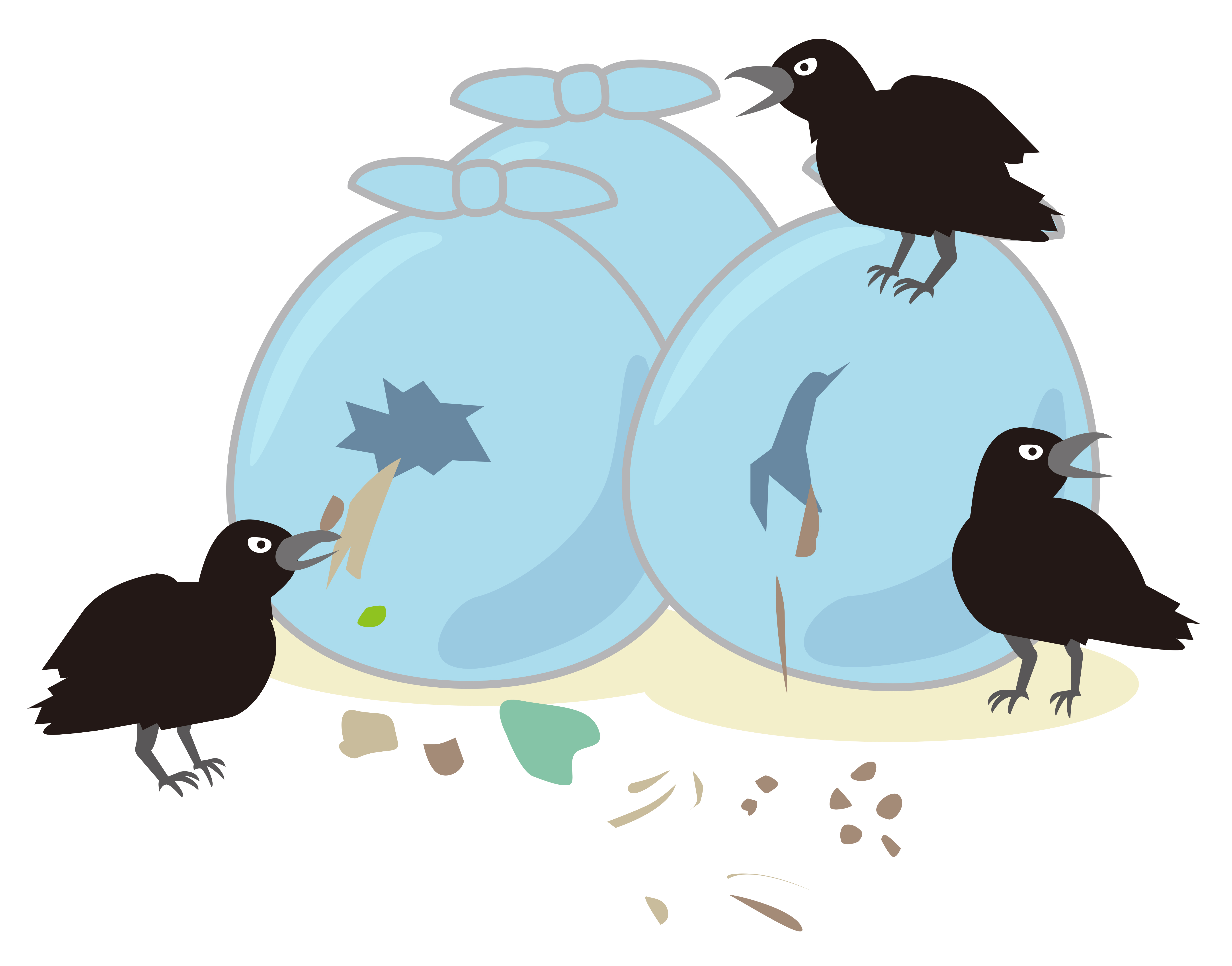 ゴミ袋 カラス からす 烏 生ゴミ 燃えるゴミ 集積場 ゴミ置き場 散乱 散らかり 町内会 自治体 市町村 問題 トラブル 当番 商用利用可 ベクター vector 無料 フリー素材 free download フリーイラスト.jp free illustration freeillust.jp