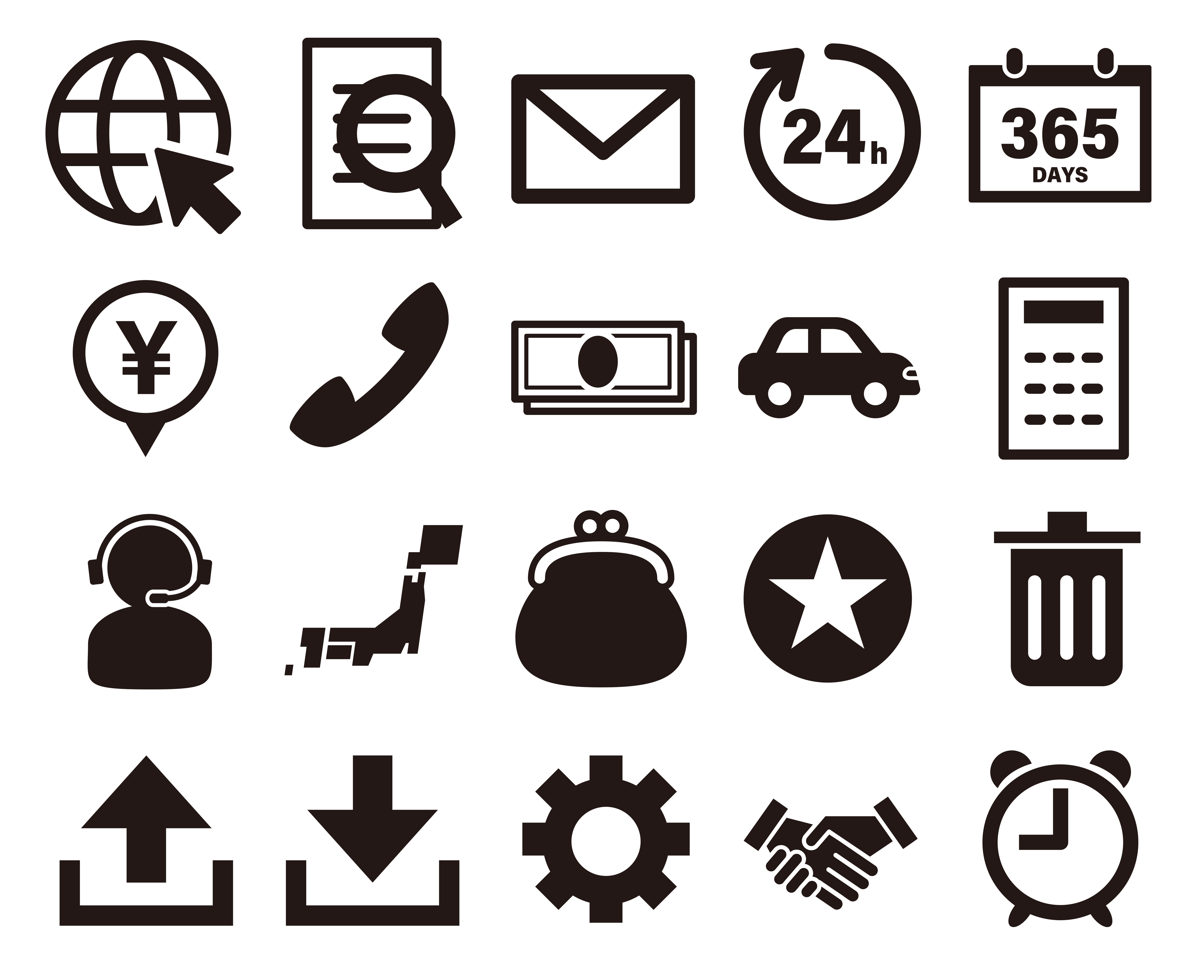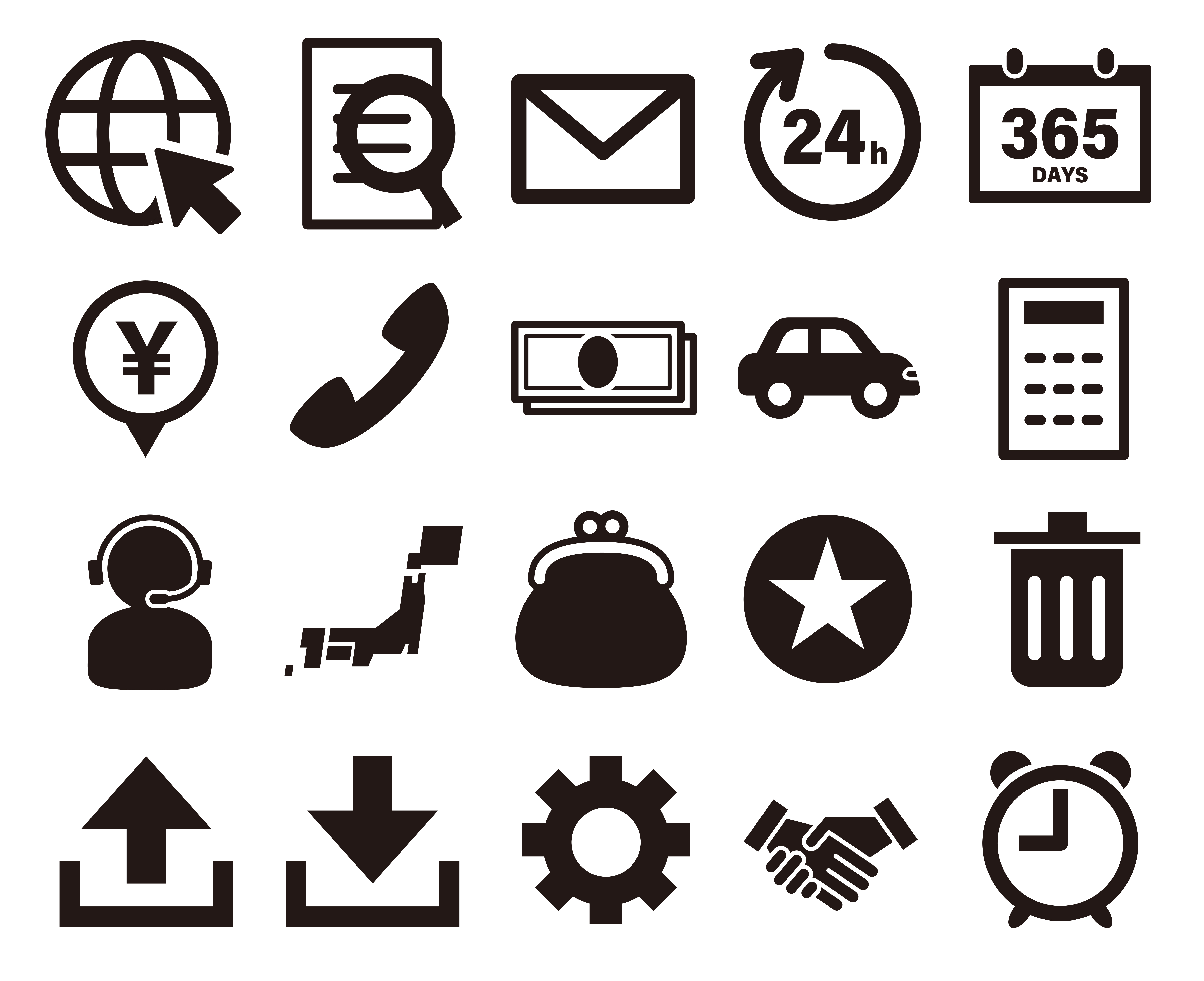 シンプル 図形 アイコン マーク グローバル スタンダード global standard 人 person 人物 商用利用可 ベクター vector 無料 フリー素材 free download フリーイラスト.jp free illustration freeillust.jp ゴミ箱 時計 地図 ネット 24時間 365日 紙幣 金 車 財布 オペレーター 設定