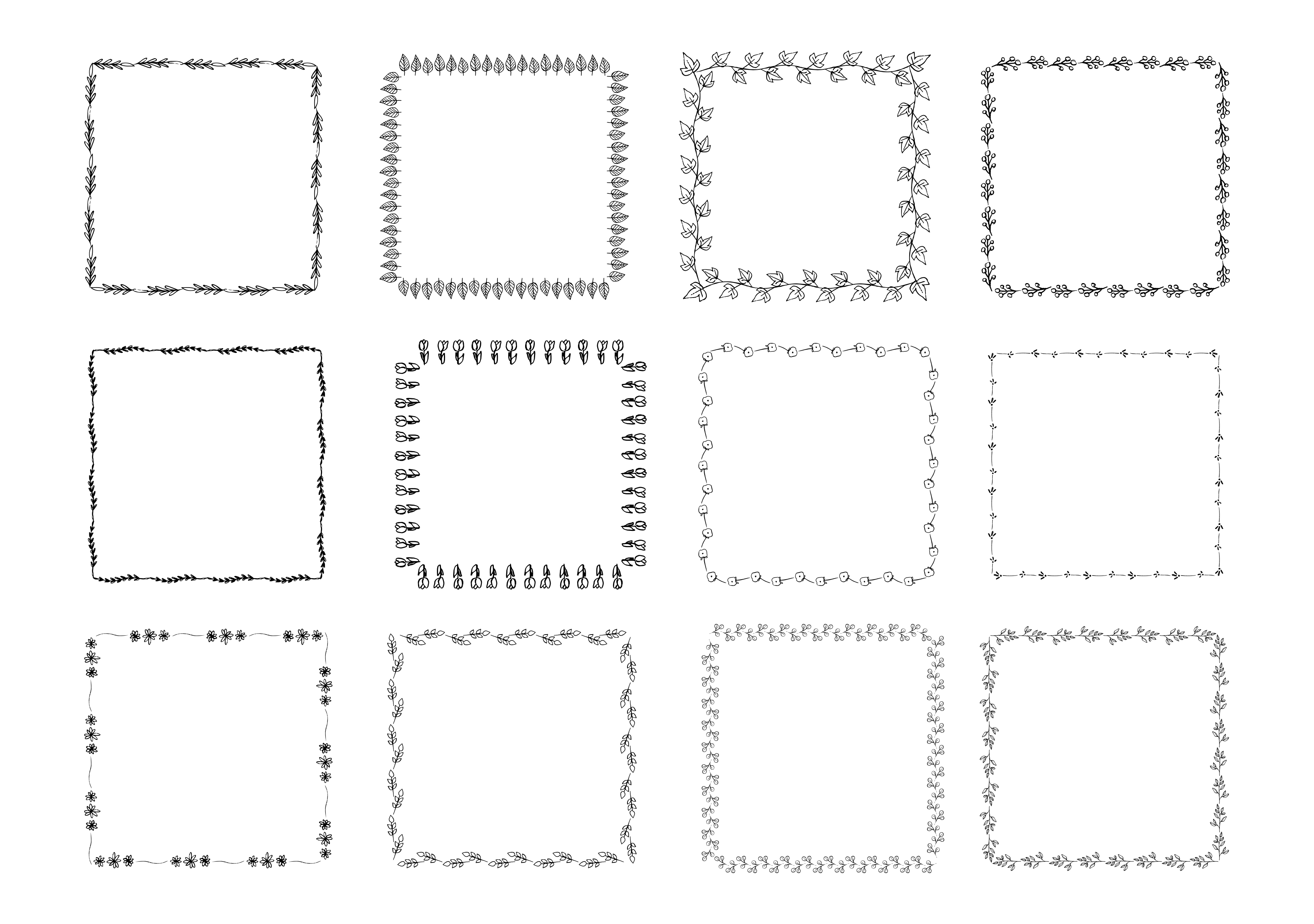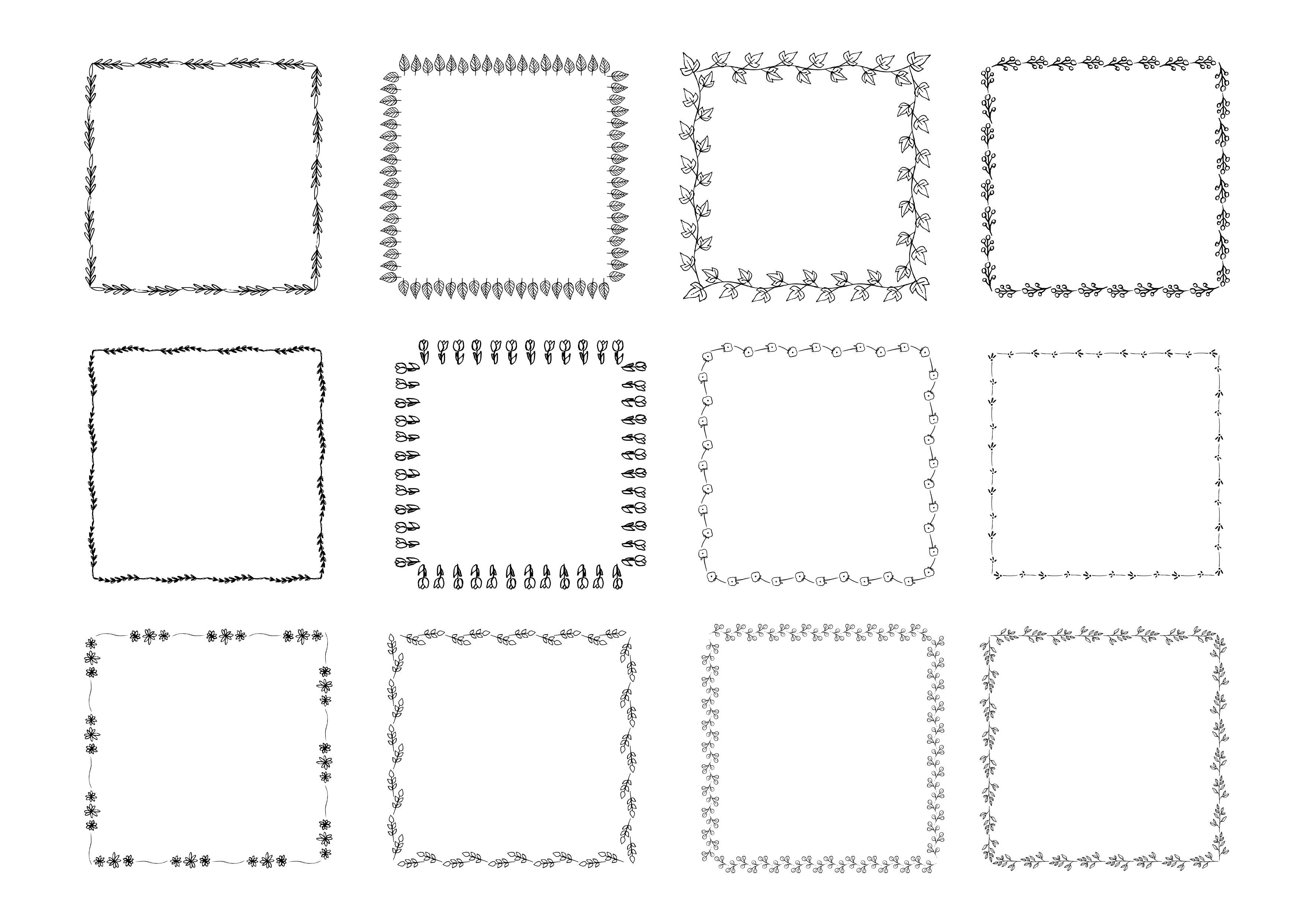 植物 花 葉 手書き 手描き フリーハンド ハーブ 茎 フレーム 枠 飾り罫 おしゃれ シンプル